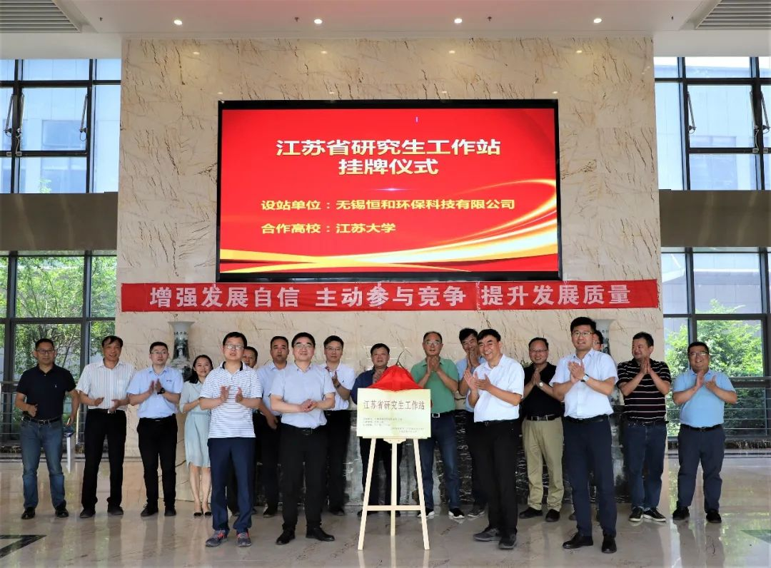 ,江苏大学汽车与交通工程学院尹必峰教授与恒和环保总经理杨延相教授共同为双方联合建设的“江苏省研究生工作站”进行挂牌揭幕,给本次学术委员会研讨会划上一个圆满的句号。
