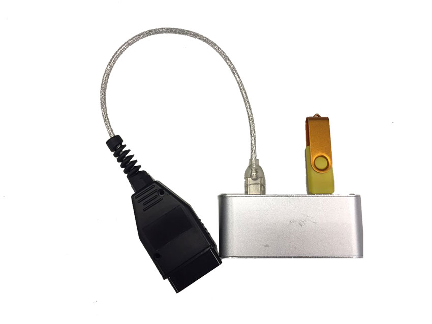 ![]() DCU升级U盘工具的照片 刷写程序硬件上需要的准备:U 盘一个、转接线、升级仪。 实物如下图所示: