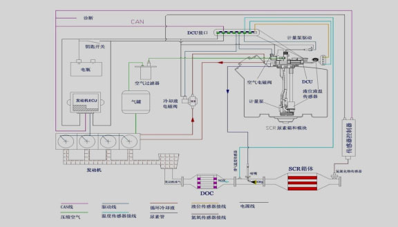 DCU自主采集液位信号、尿素液温度、排气温度、NOx浓度等,根据自主开发的逻辑算法和标定数据自主确定尿素液喷射量,并控制尿素计量喷射系统按照要求喷射尿素液、完成OBD诊断、进行喷射前预处理(供给填充)及喷射结束后的清扫(回抽)。